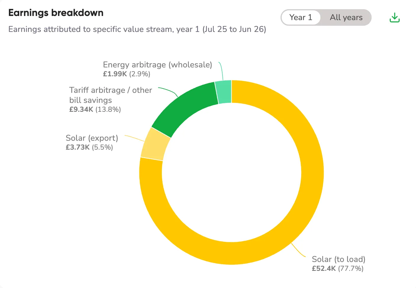 As renewable energy generation increasingly makes electricity markets more volatile, a key emerging value stream for commercial batteries is wholesale market arbitrage. This means charging a battery when market prices are low and discharging when market prices are high. When it comes to commercial solar projects in the UK this is critical, as it means adding a battery can deliver additional value for the owner all year round.