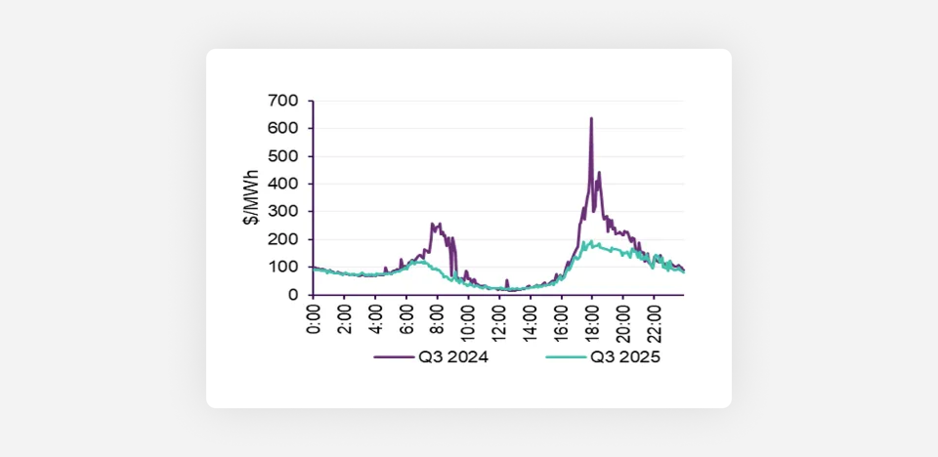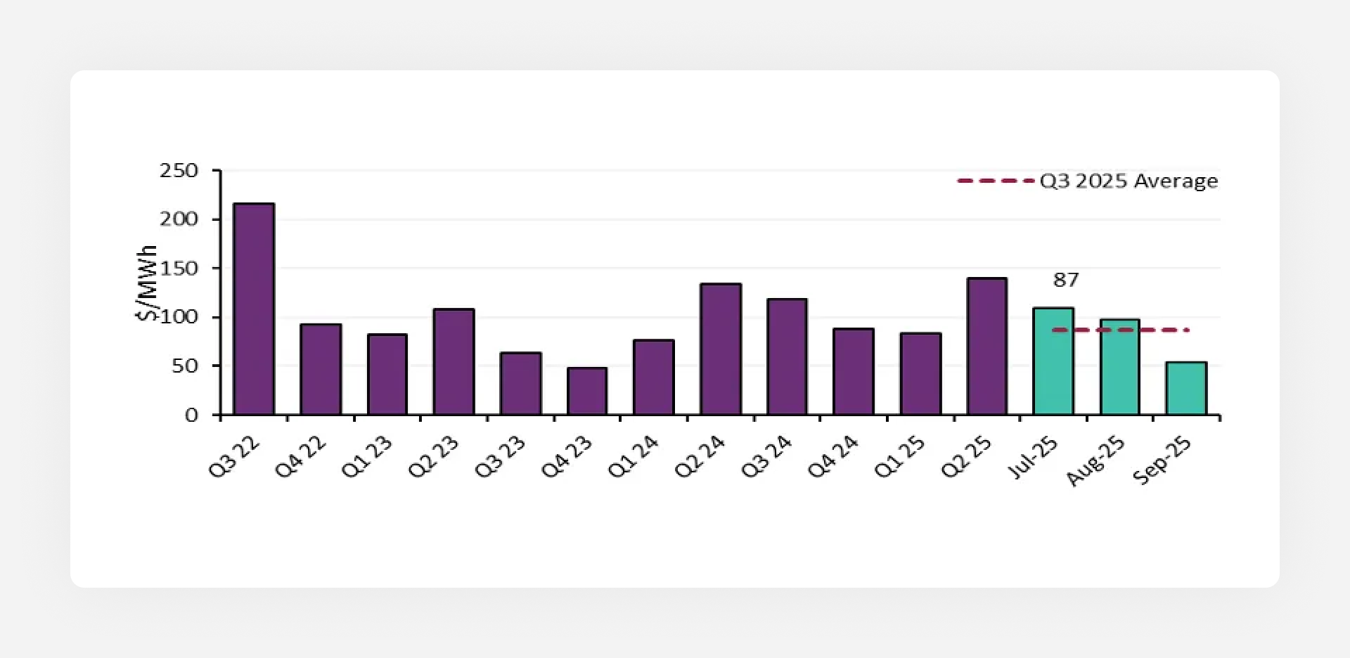 The underlying trend is clear, renewable energy is pushing average prices down. We saw renewables provide nearly 43% of total electricity supply in Q3 2025. This abundance of cheap power, particularly from solar, consistently drove wholesale prices down during daylight hours.