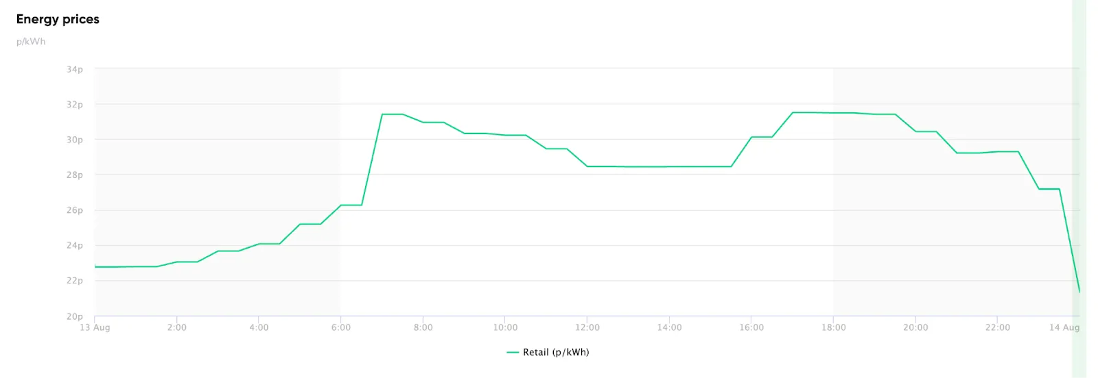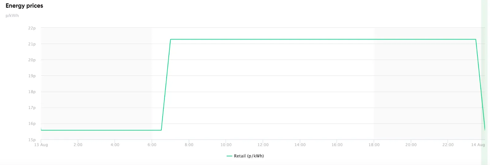 Note that for simplicity, the prices of the day-ahead wholesale market and retail tariff have been combined on the chart below. In reality, these are separate price signals for the battery.