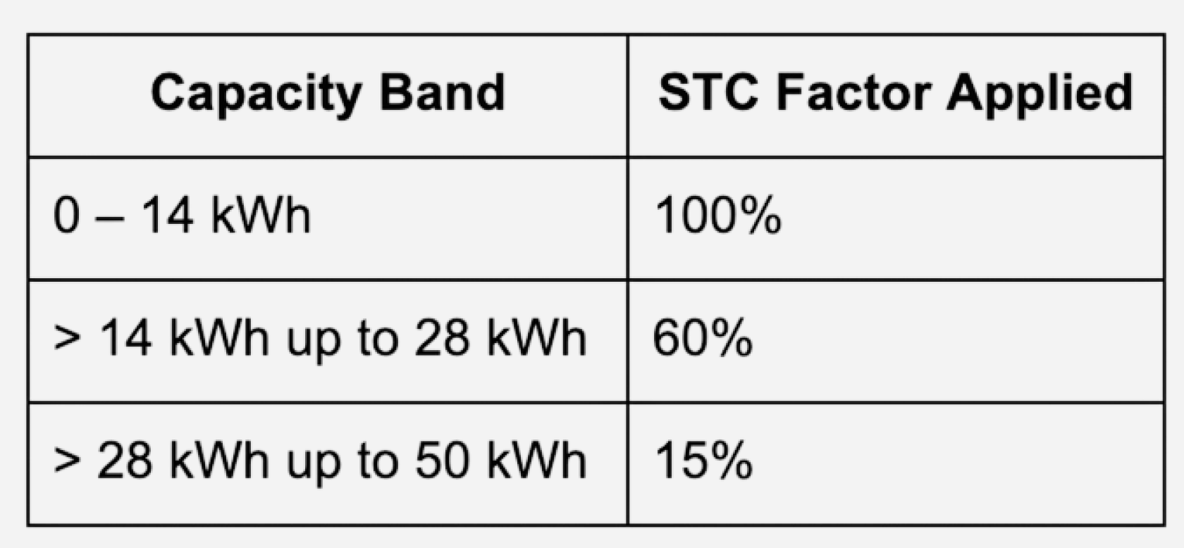 The second change is perhaps the more structurally significant one. From May 1, the level of STC support will taper based on how much usable capacity is installed, across three bands: